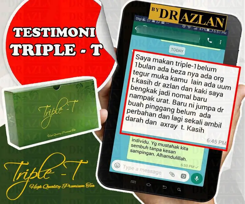 Kekuatan Triple-T bukan sekadar hasil kajian tapi siap dapat cop Kementerian Kesihatan Malaysia (KKM).