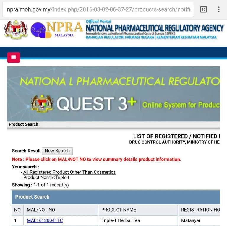 Triple-T siap berdaftar dengan NPRA (National Pharmaceutical Regulatory Agency), ada hologram KKM tapi anda masih percaya review TikTok tanpa nombor kelulusan?